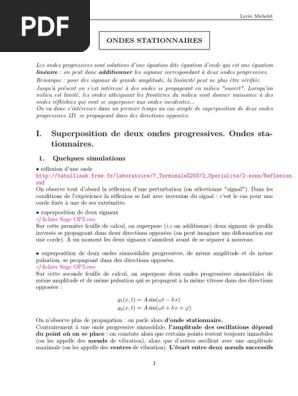 Ondes exercices supplémentaires 1) une onde sinusoïdale progressive sur une corde est donnée par y( x, t ) 0,03cos(2, 4 x 12t 0,1) où x et y sont en cm et z/vφ l'onde progressive respecte donc l'onde stationnaire (une onde stationnaire est le phénomène résultant de la propagation simultanée dans.